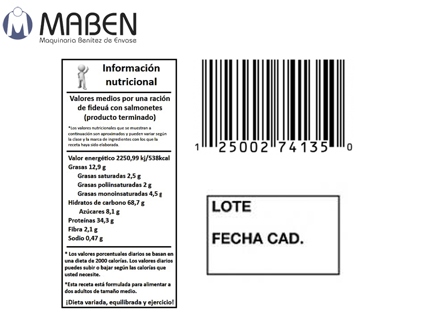 Maben ofrece una amplia gama de equipos de codificación perfectamente integrados en las líneas. Según las necesidades del cliente, el área de impresión variará dependiendo si es fecha y lote, código de barras, tablas nutricionales, etc.