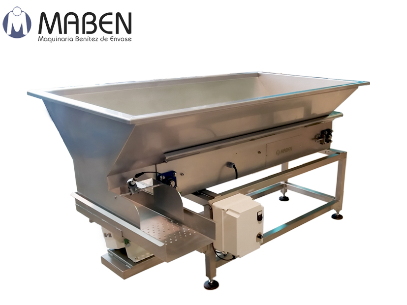 Tolva para productos de gran tamaño y difíciles de mover; con su vibrador de salida conseguimos esparcir el producto uniformemente hacia el elevador.