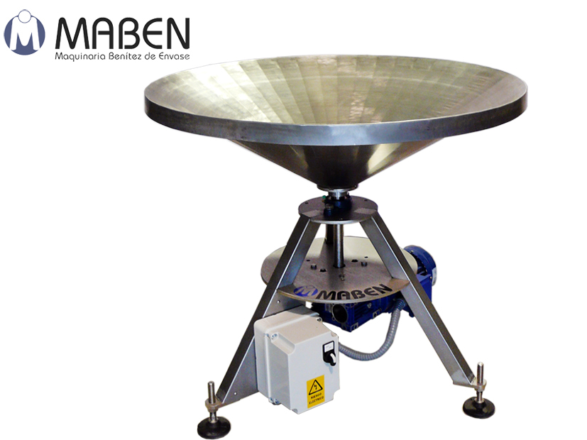 Mesa giratoria de Maben de 900 mm de diámetro, con 32º de inclinación. Altura 860mm, de velocidad regulable. Acero inoxidable AISI-304.