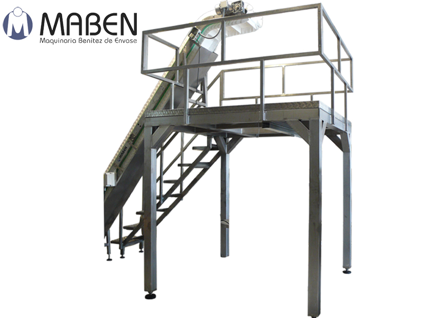 Acero inoxidable, con peldaños y suelo antideslizantes.